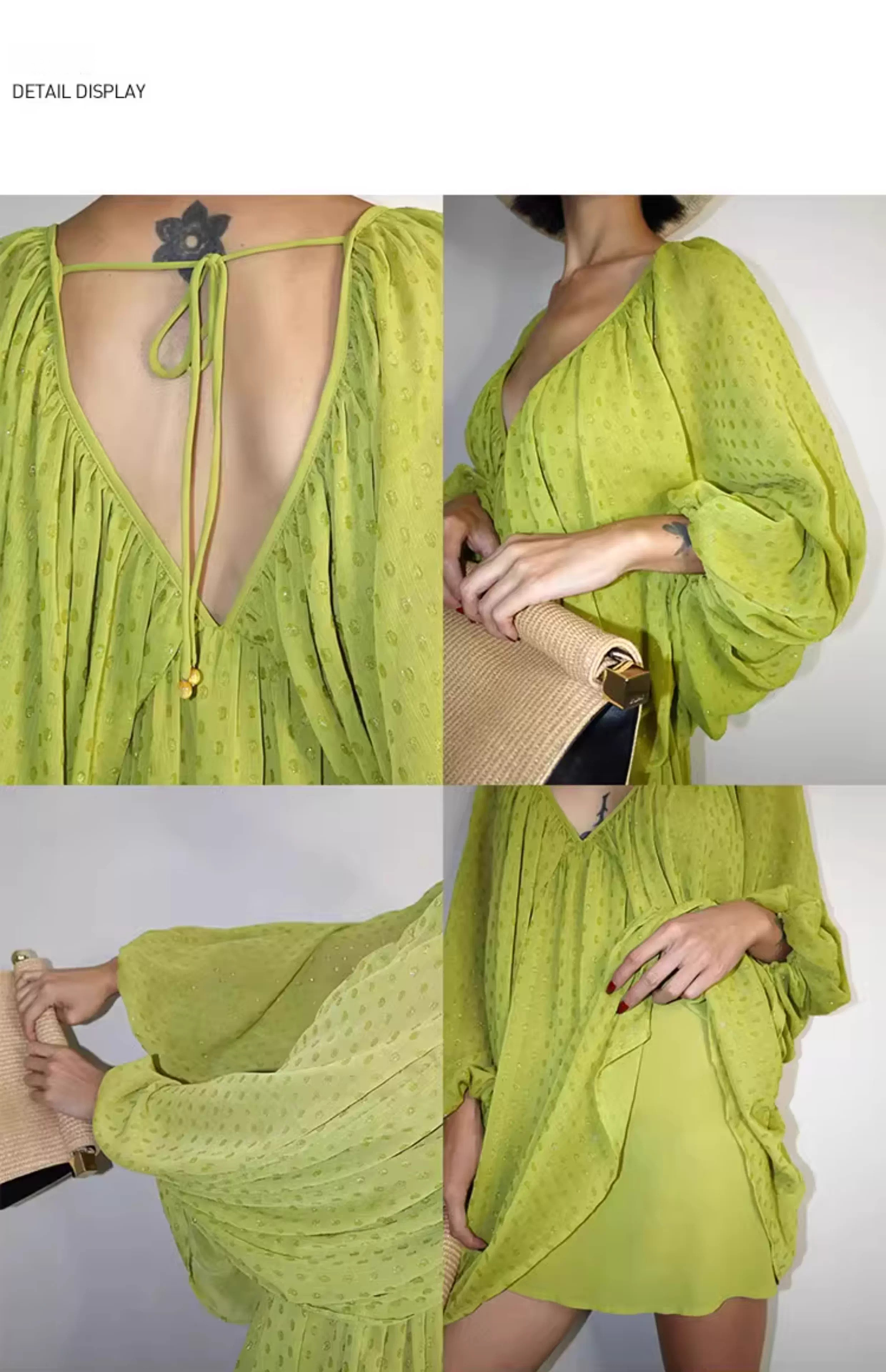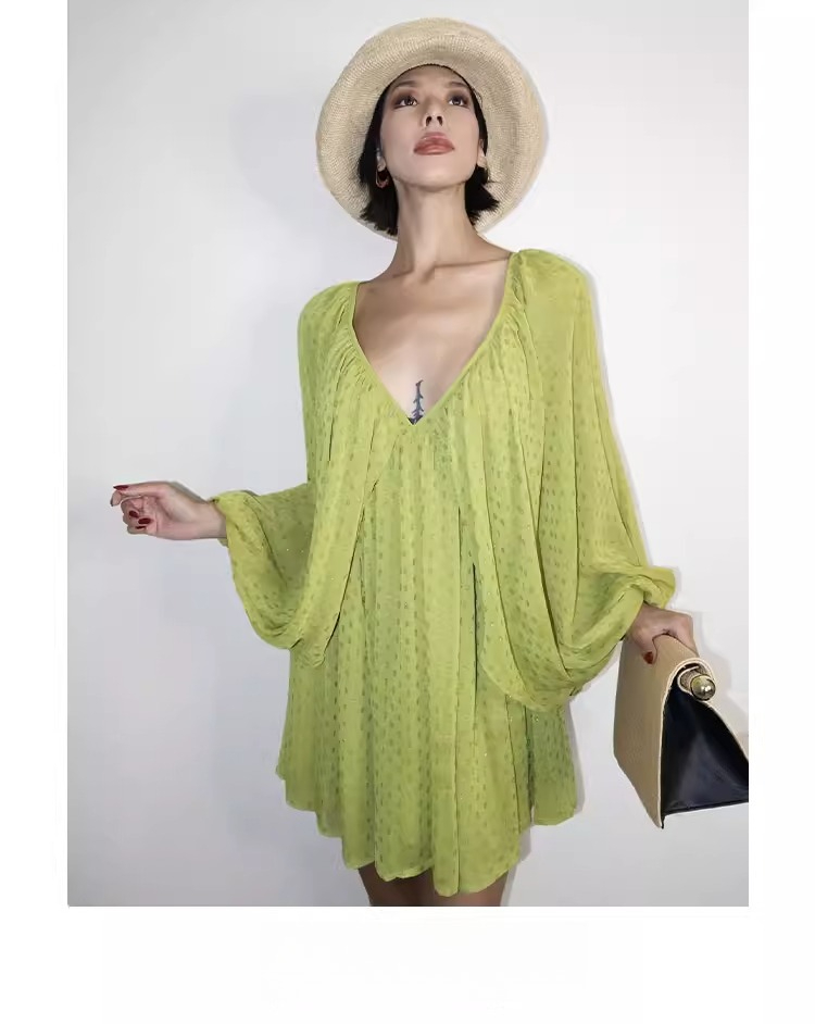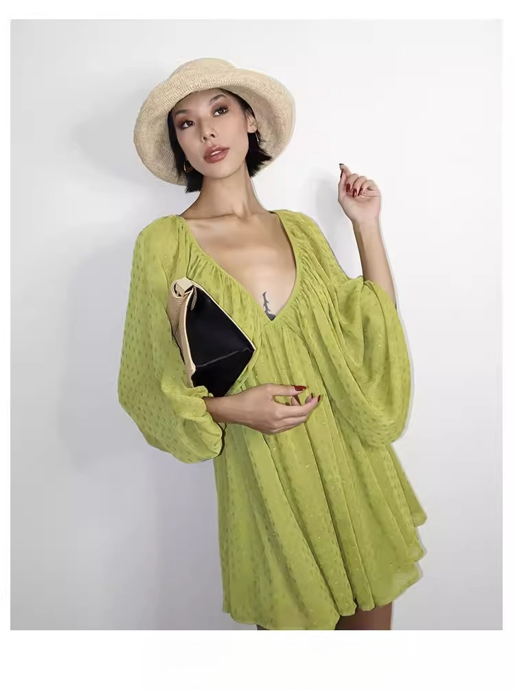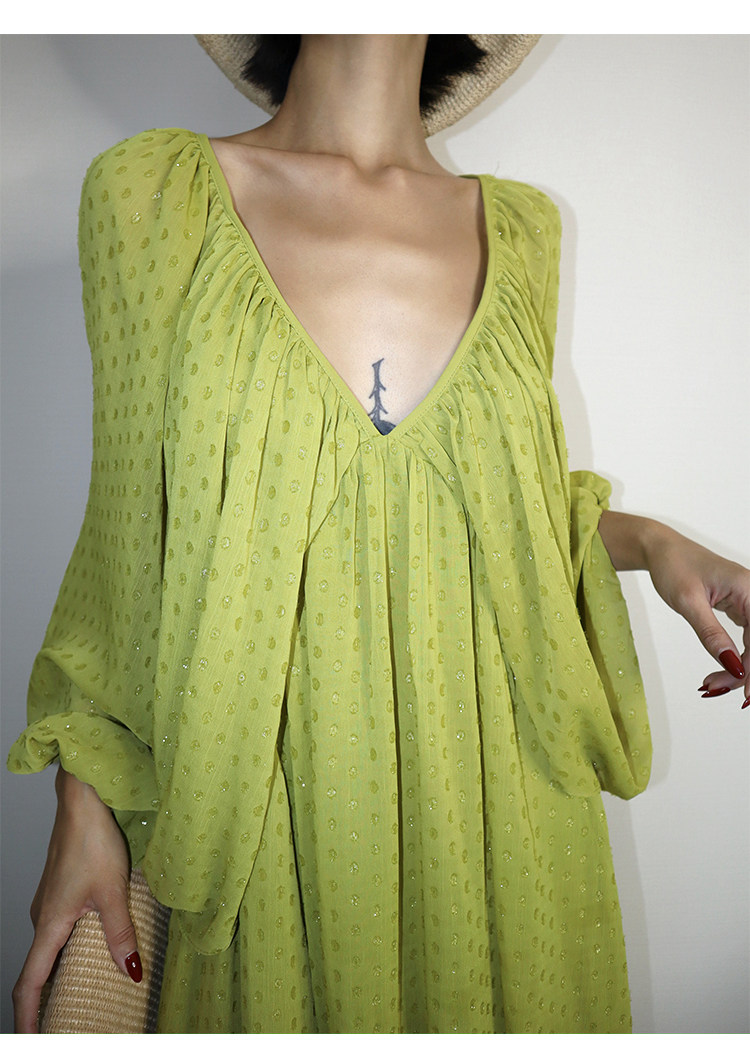 Lantern Sleeve Polka Dot Dress
