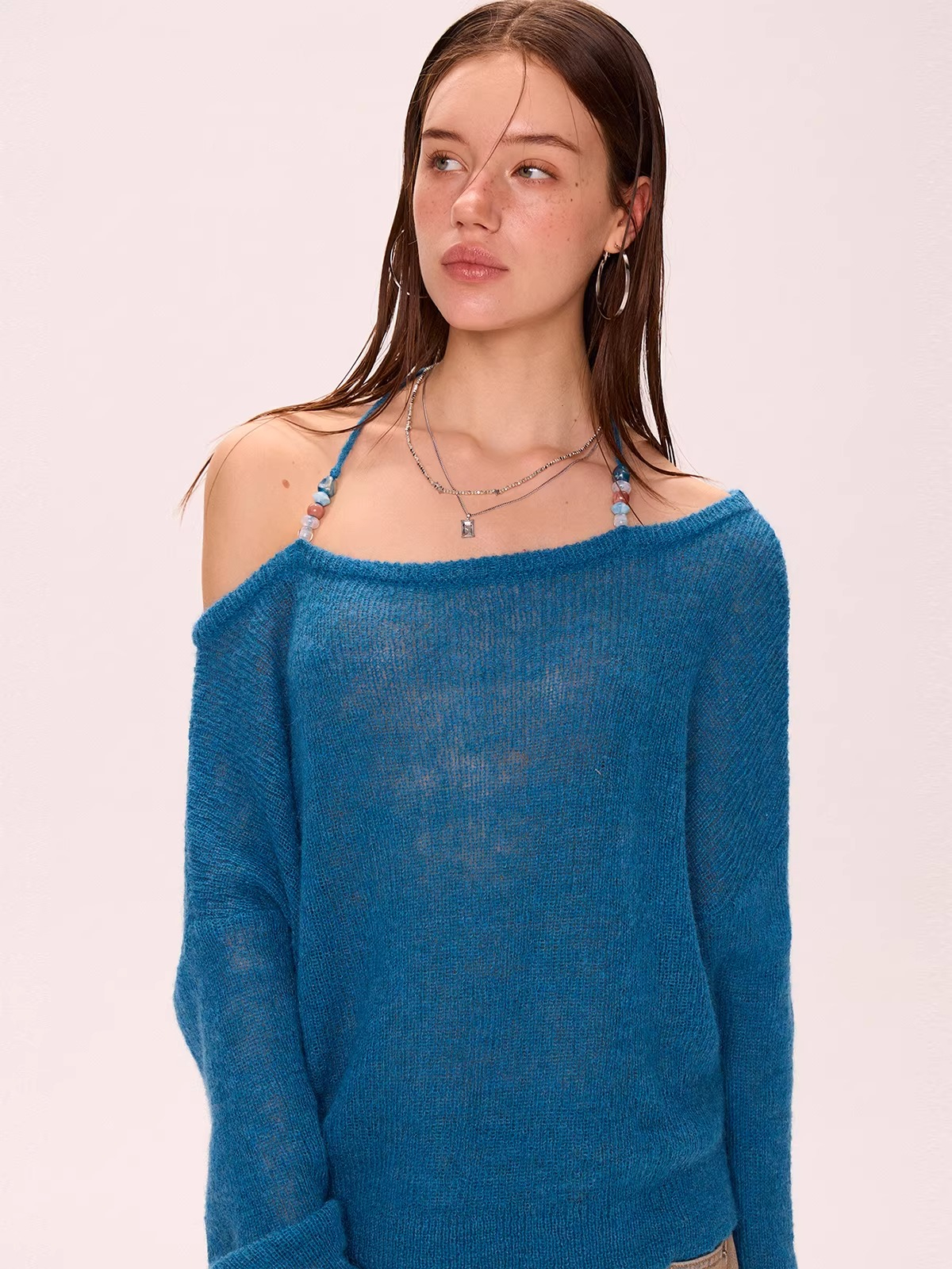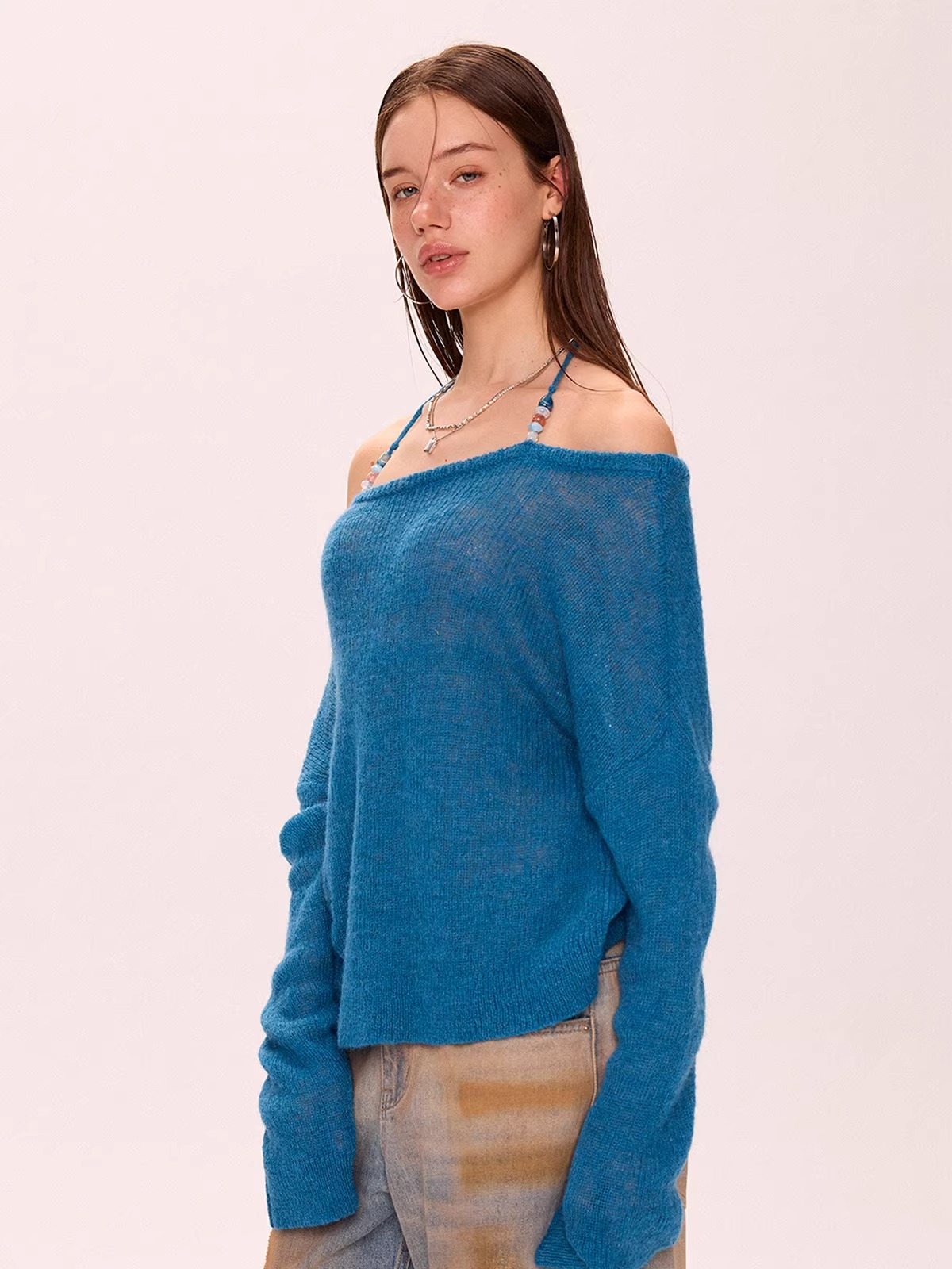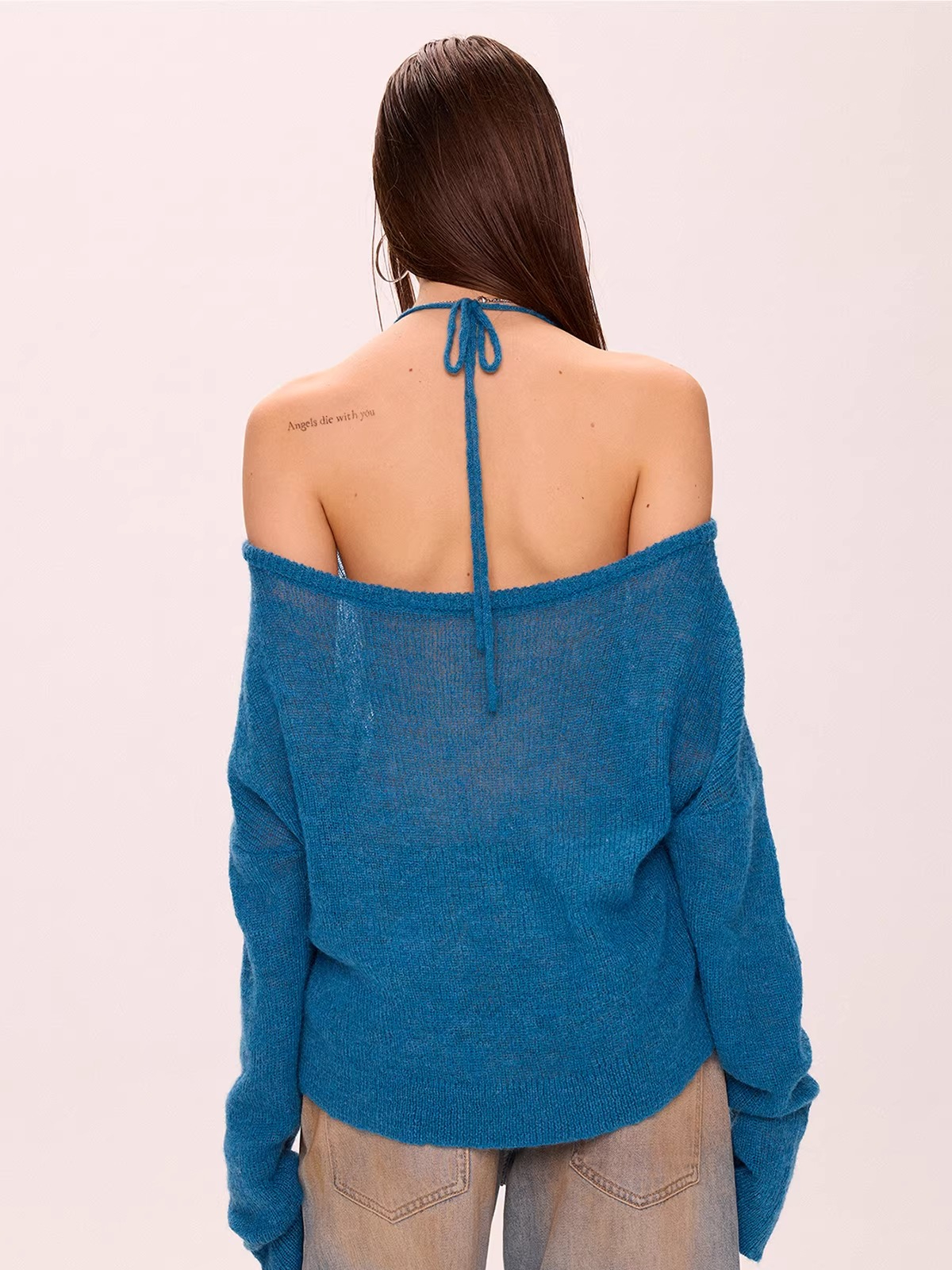 Off-Shoulder Halter Neck Thin Knit Top