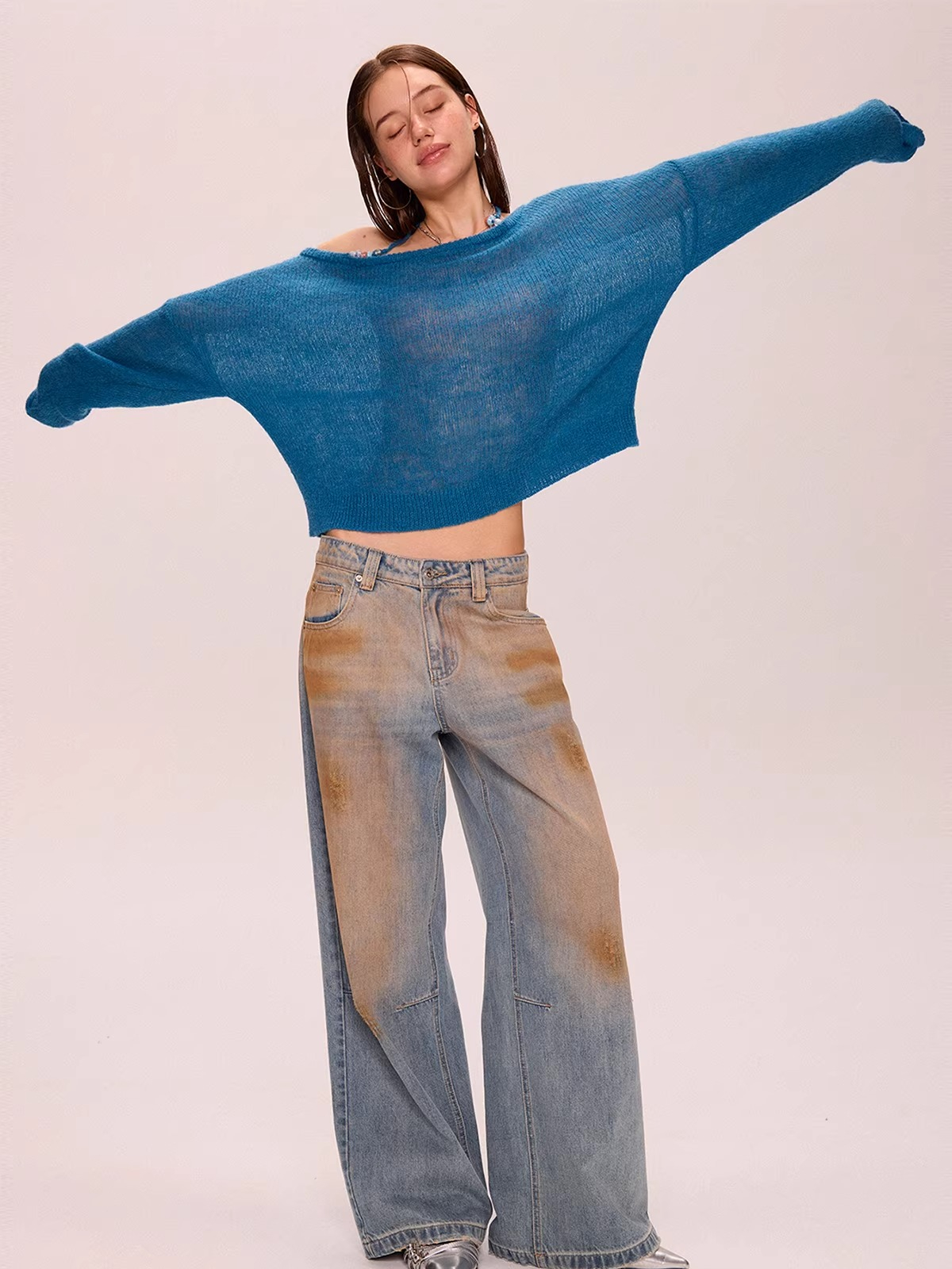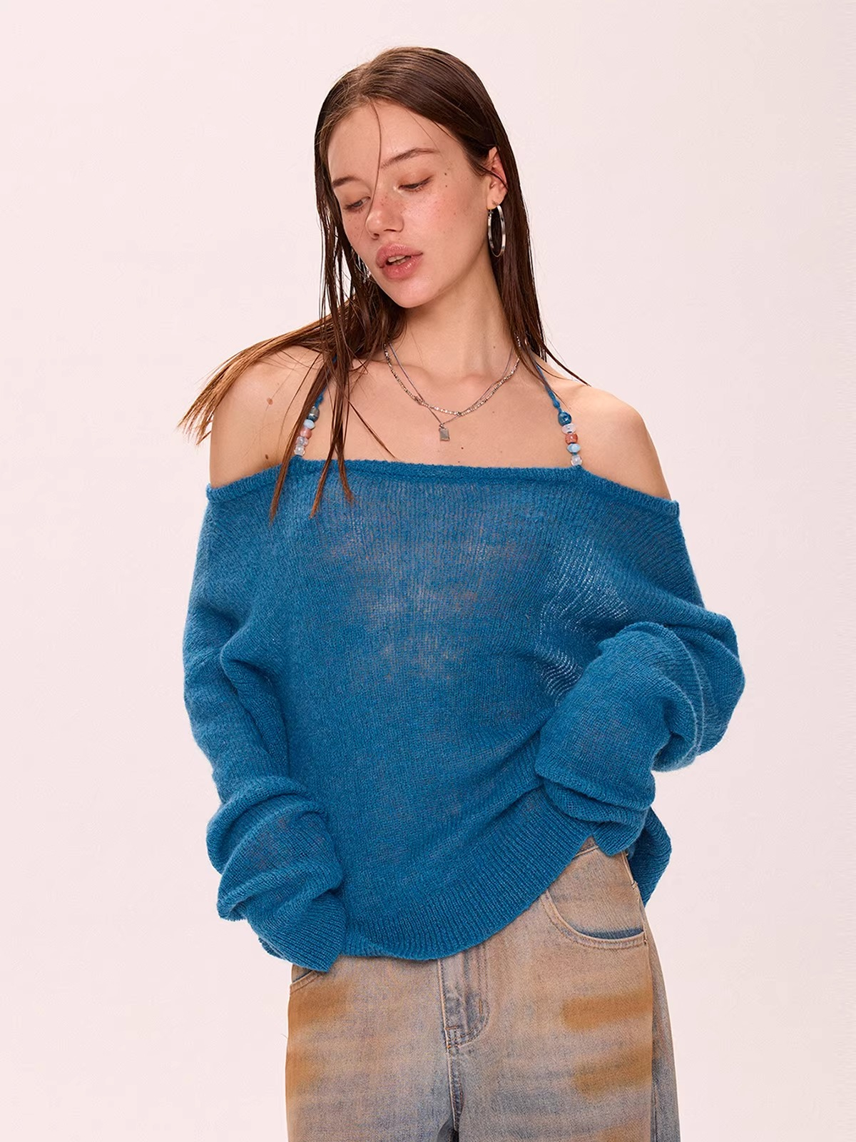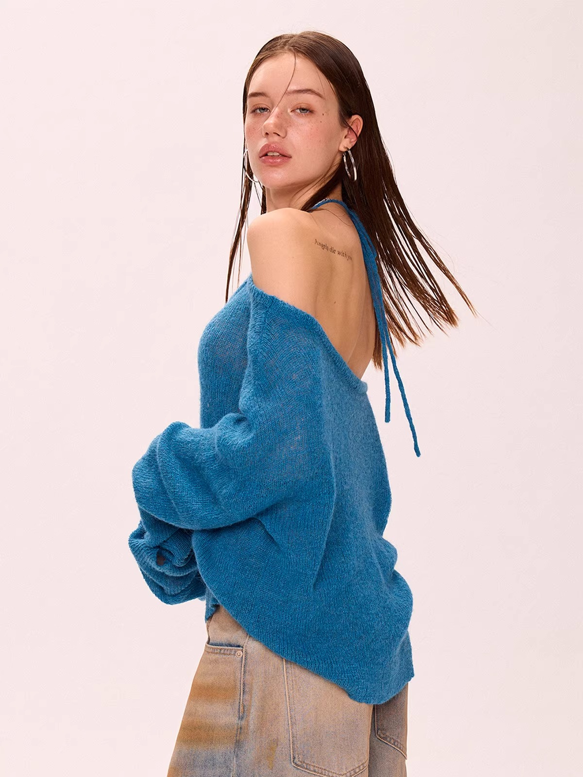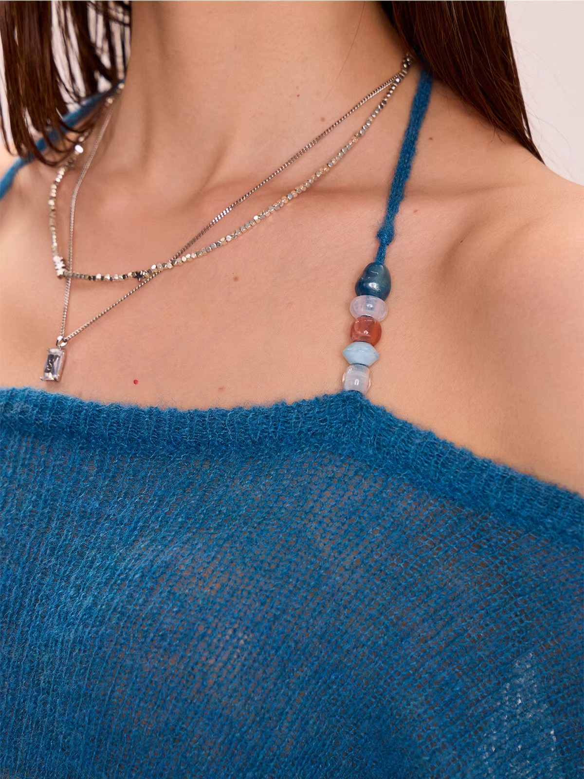 Off-Shoulder Halter Neck Thin Knit Top