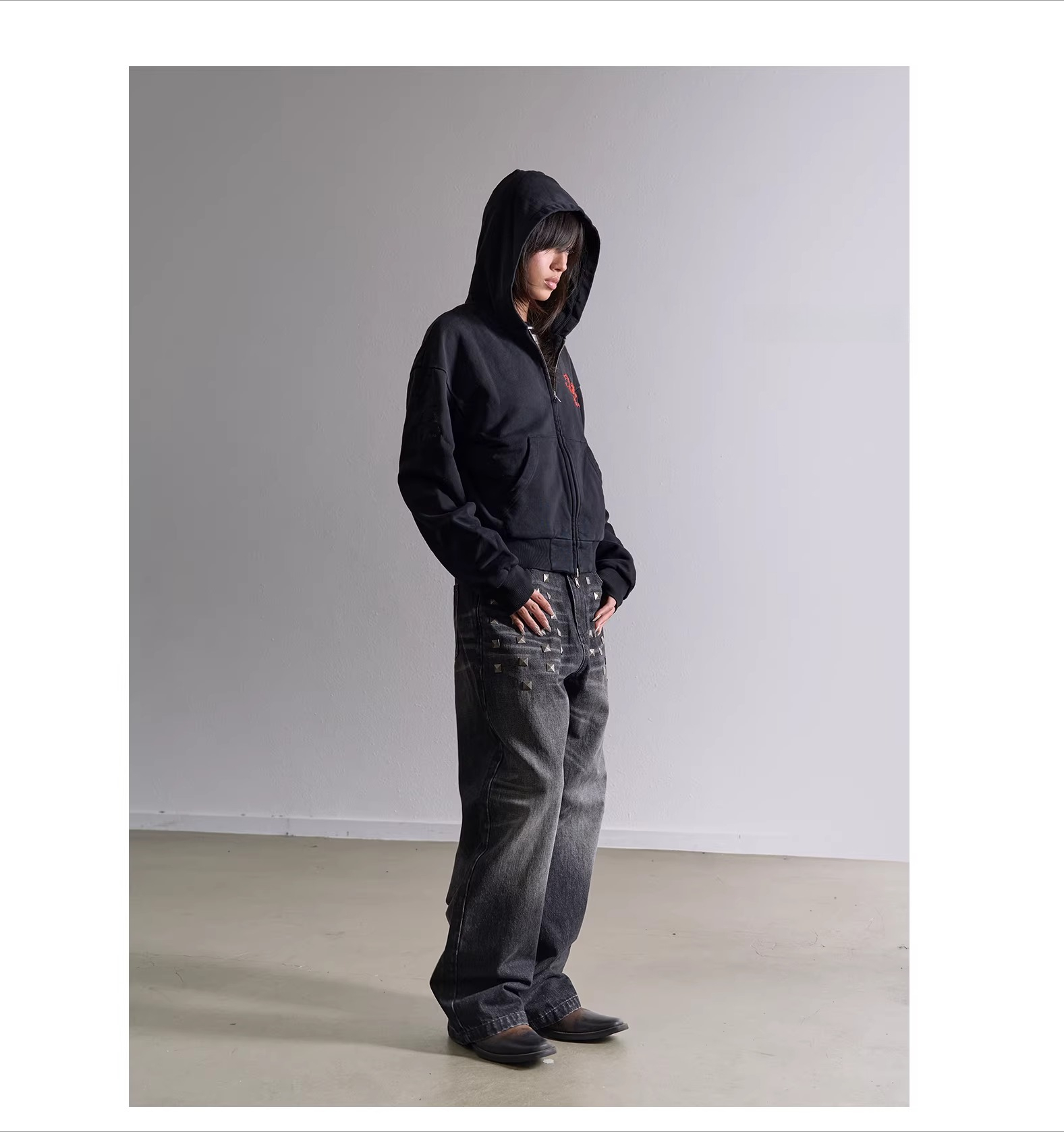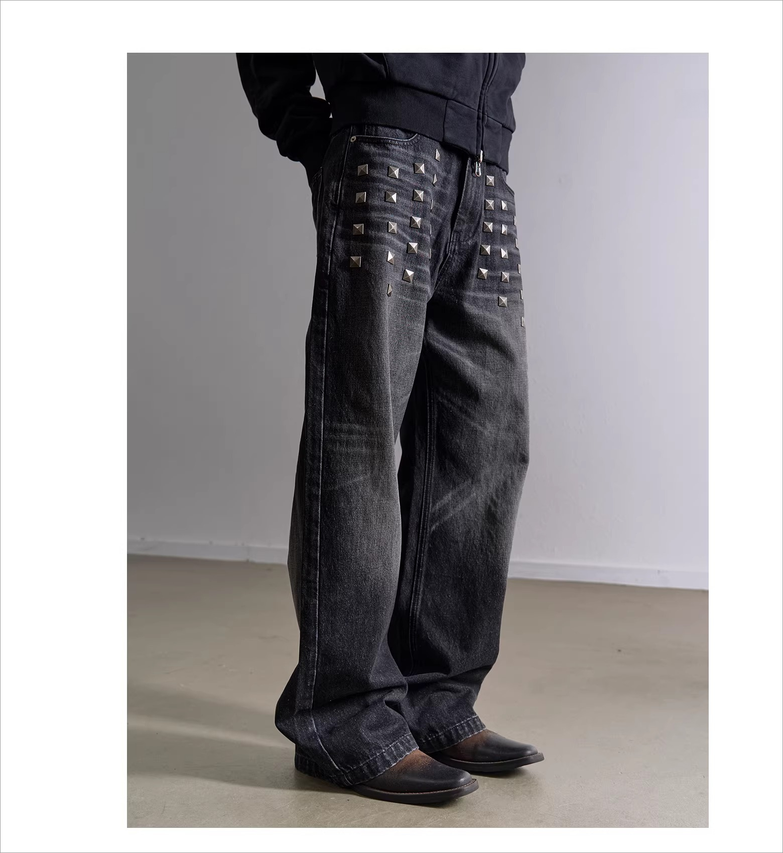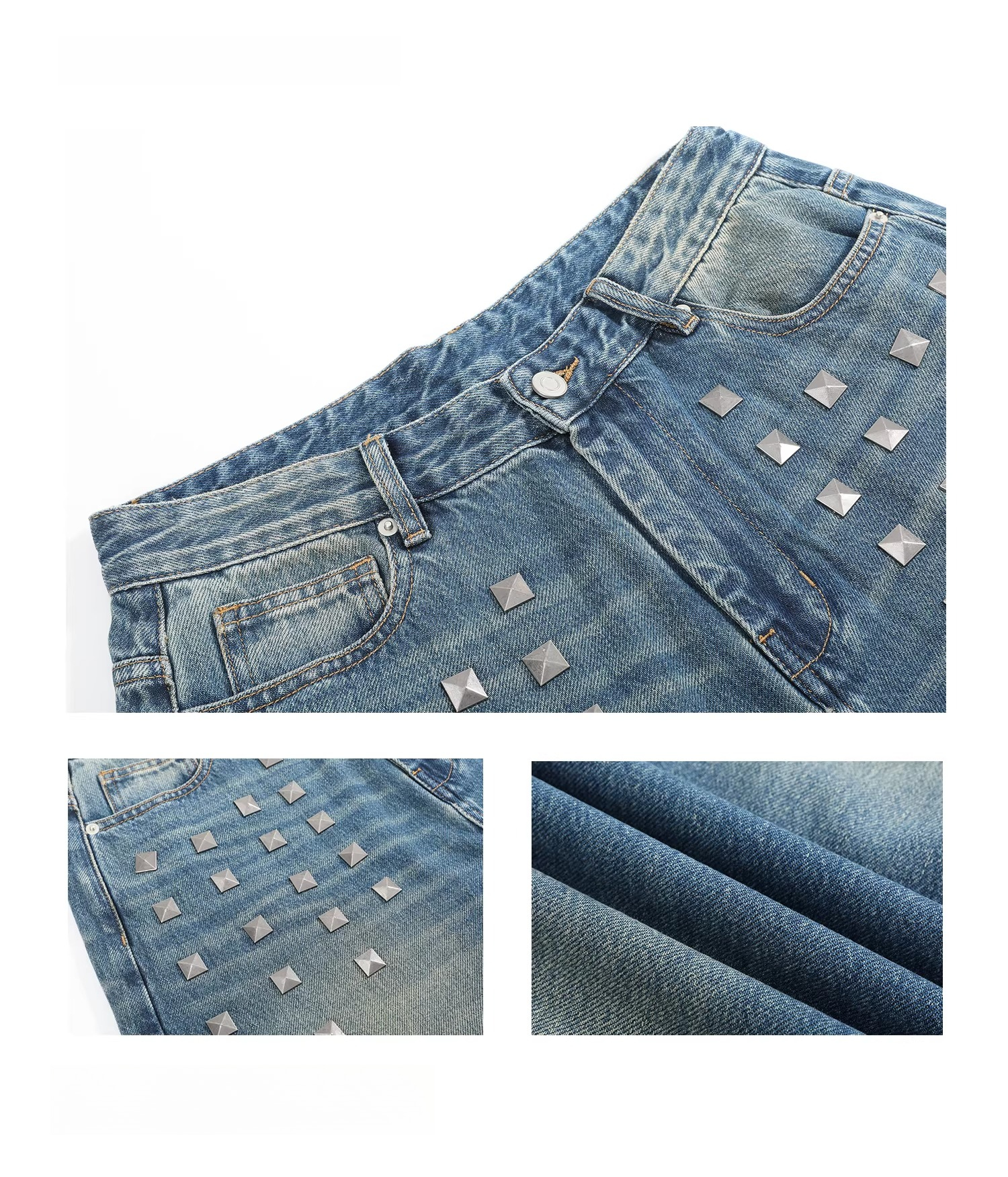 Square Stud Trim Straight Leg Jeans