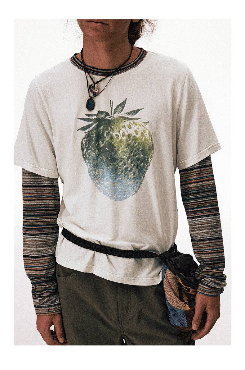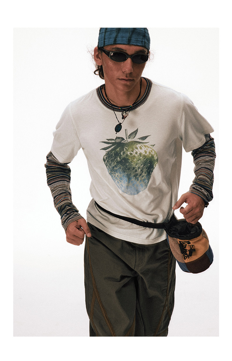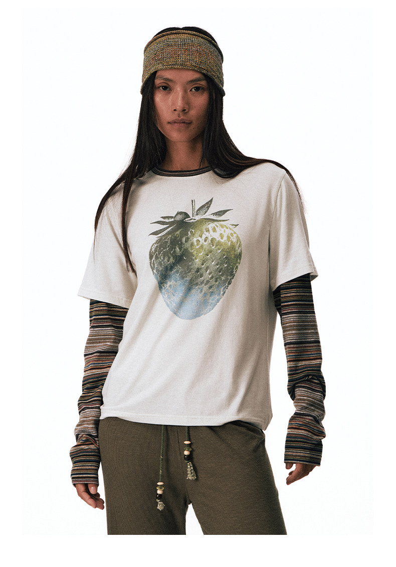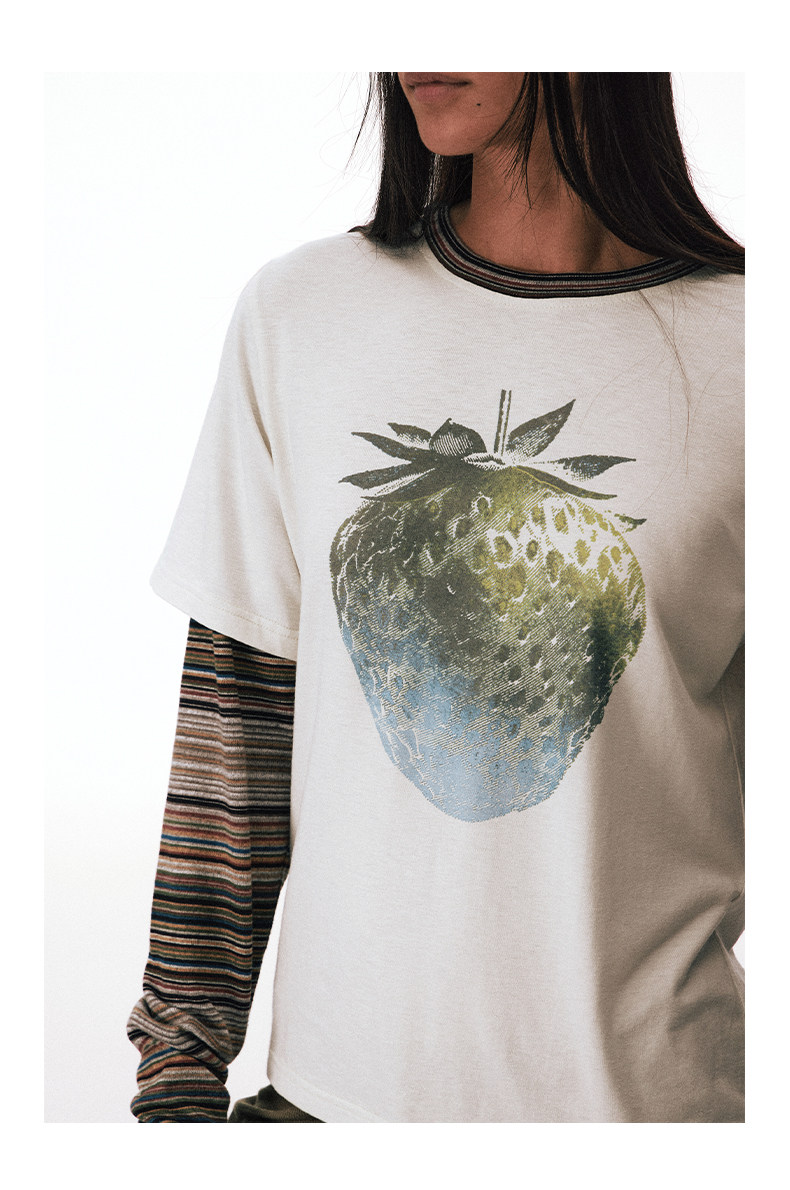 A relaxed, eco-friendly top with playful strawberry detail – perfect for effortless layering and everyday comfort.