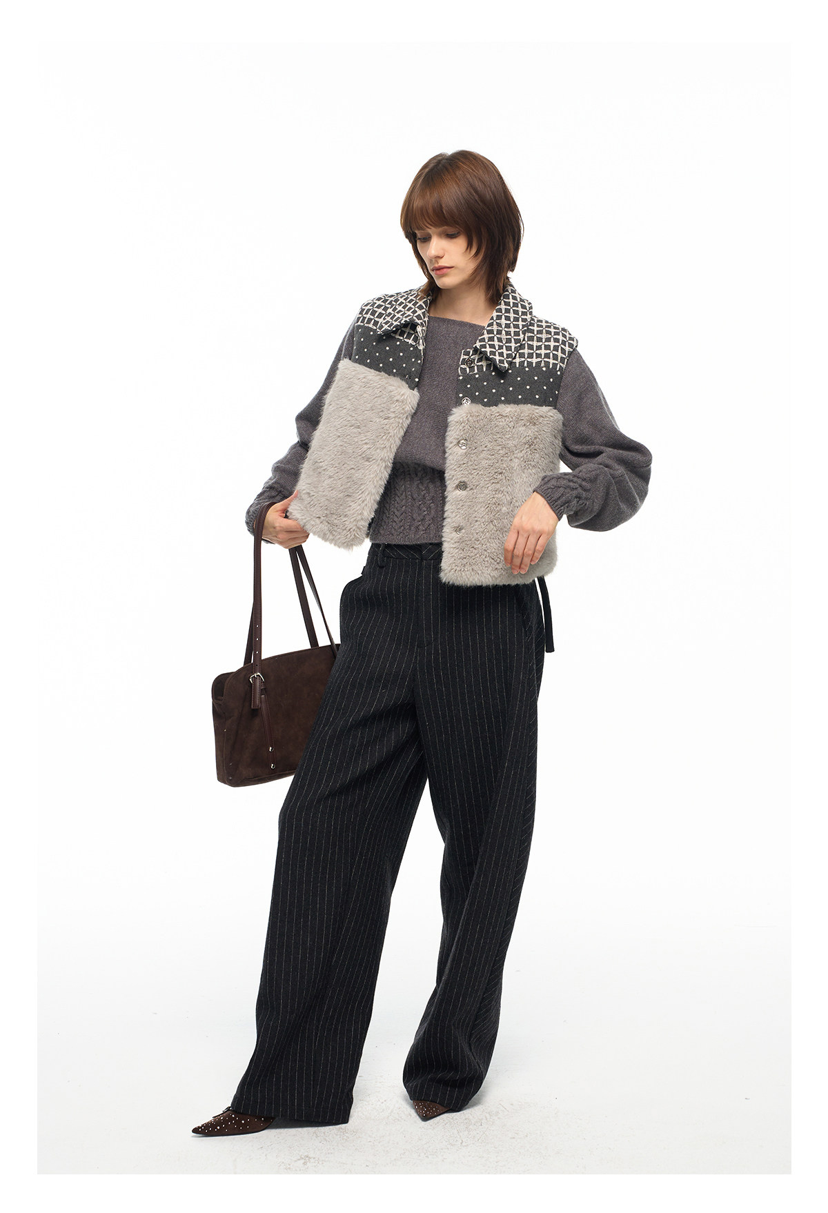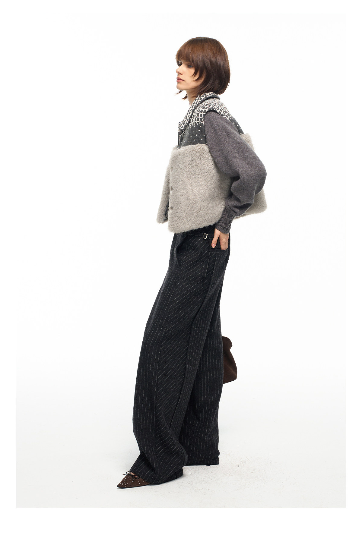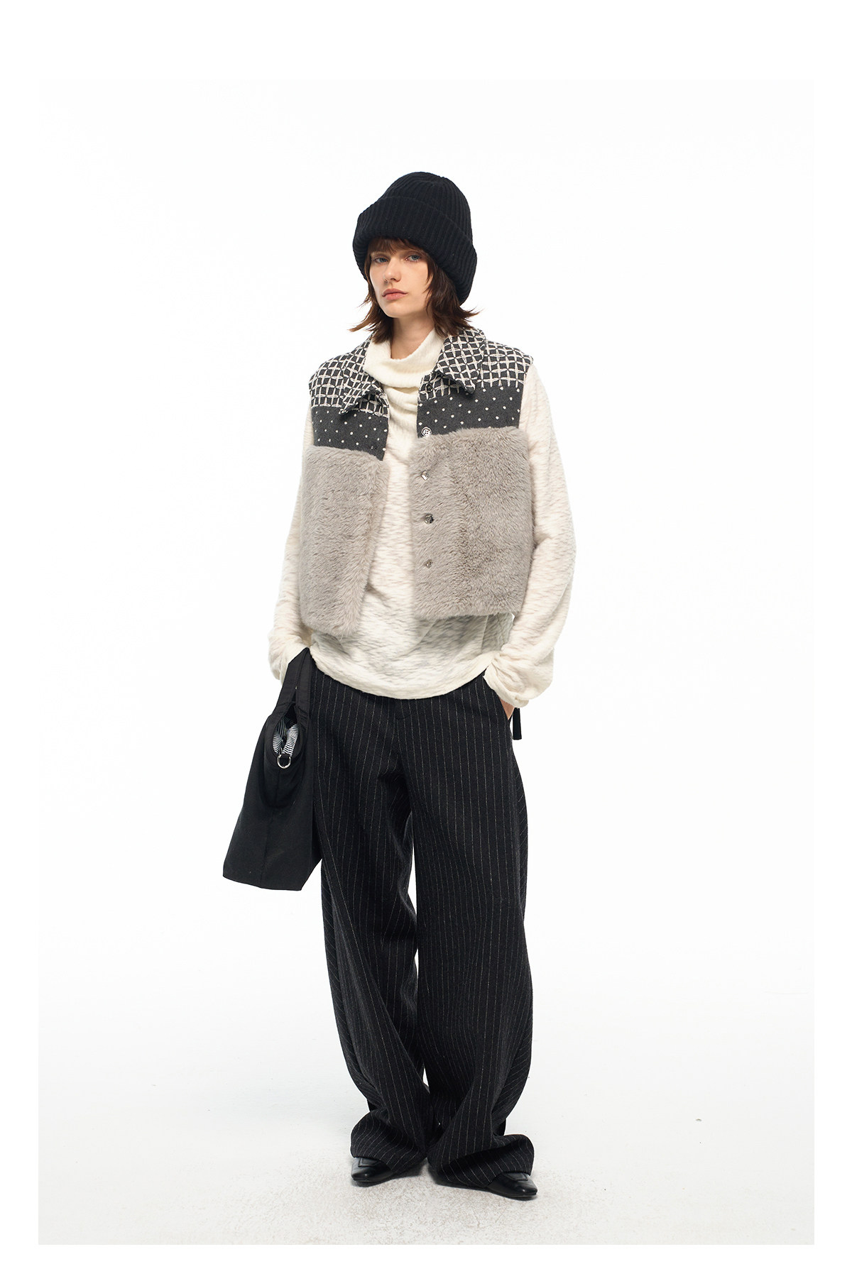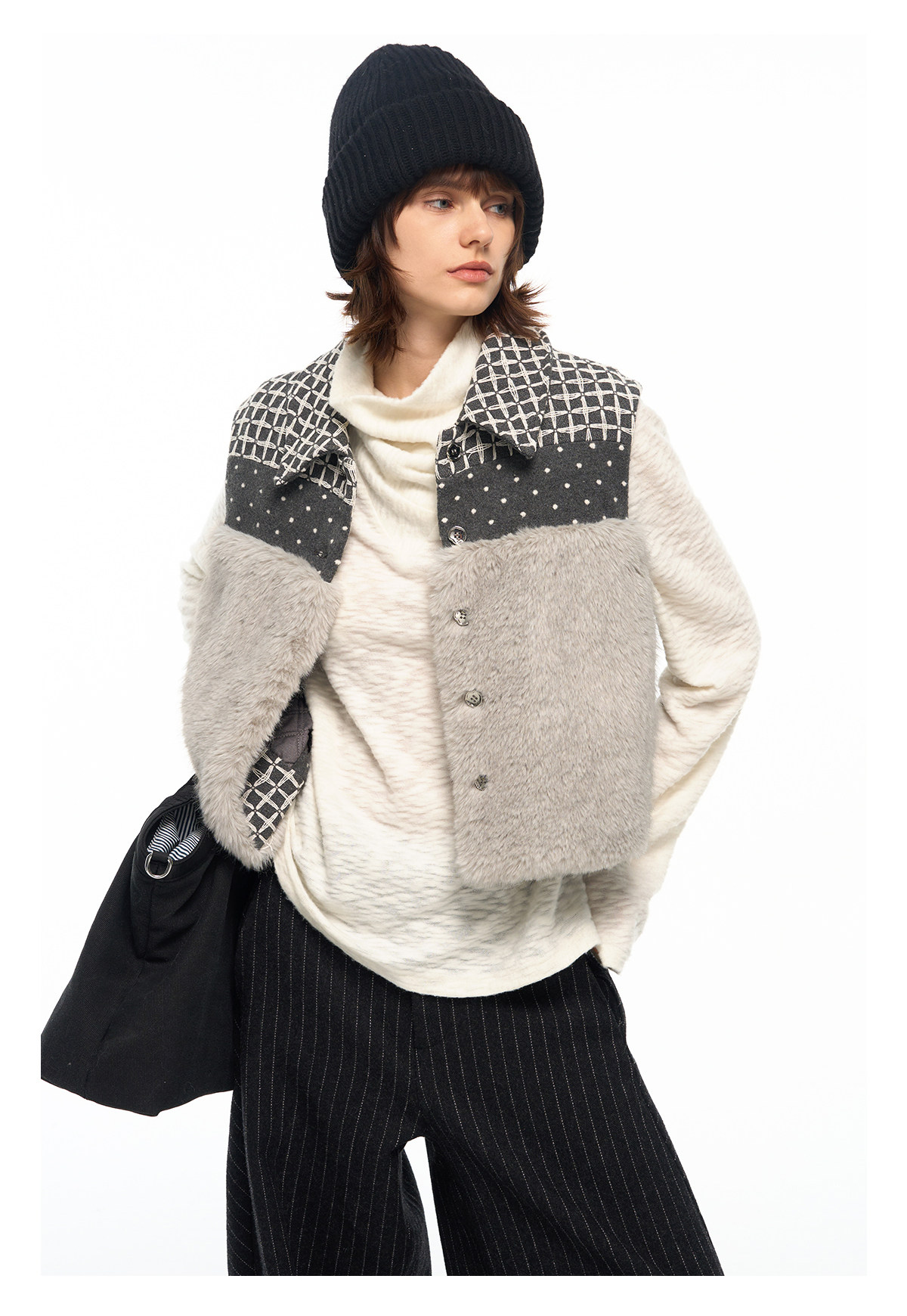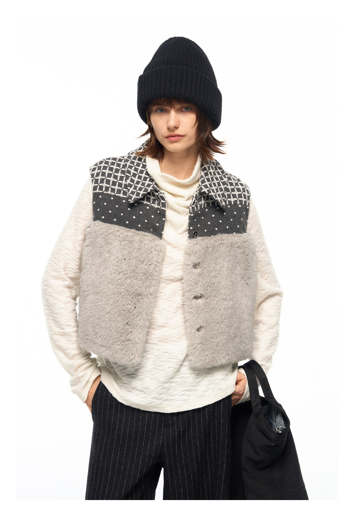 Make a striking impression with this multi-layer patchwork fur vest. Designed in an intentionally relaxed silhouette for dramatic volume, it combines a textured 100% polyester shell and plush faux fur with 100% natural wool filling for lightweight, effective warmth and standout style.