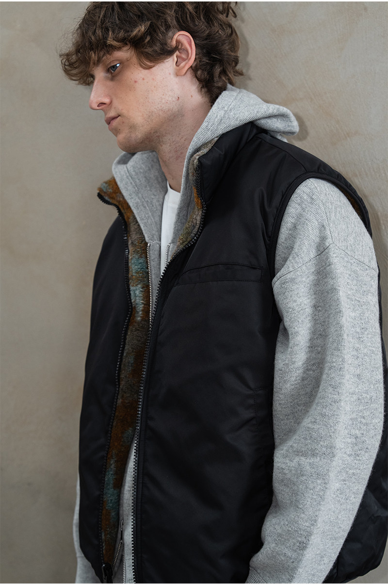 2-in-1 reversible design: wool blend front (made in Italy) / 100% nylon back