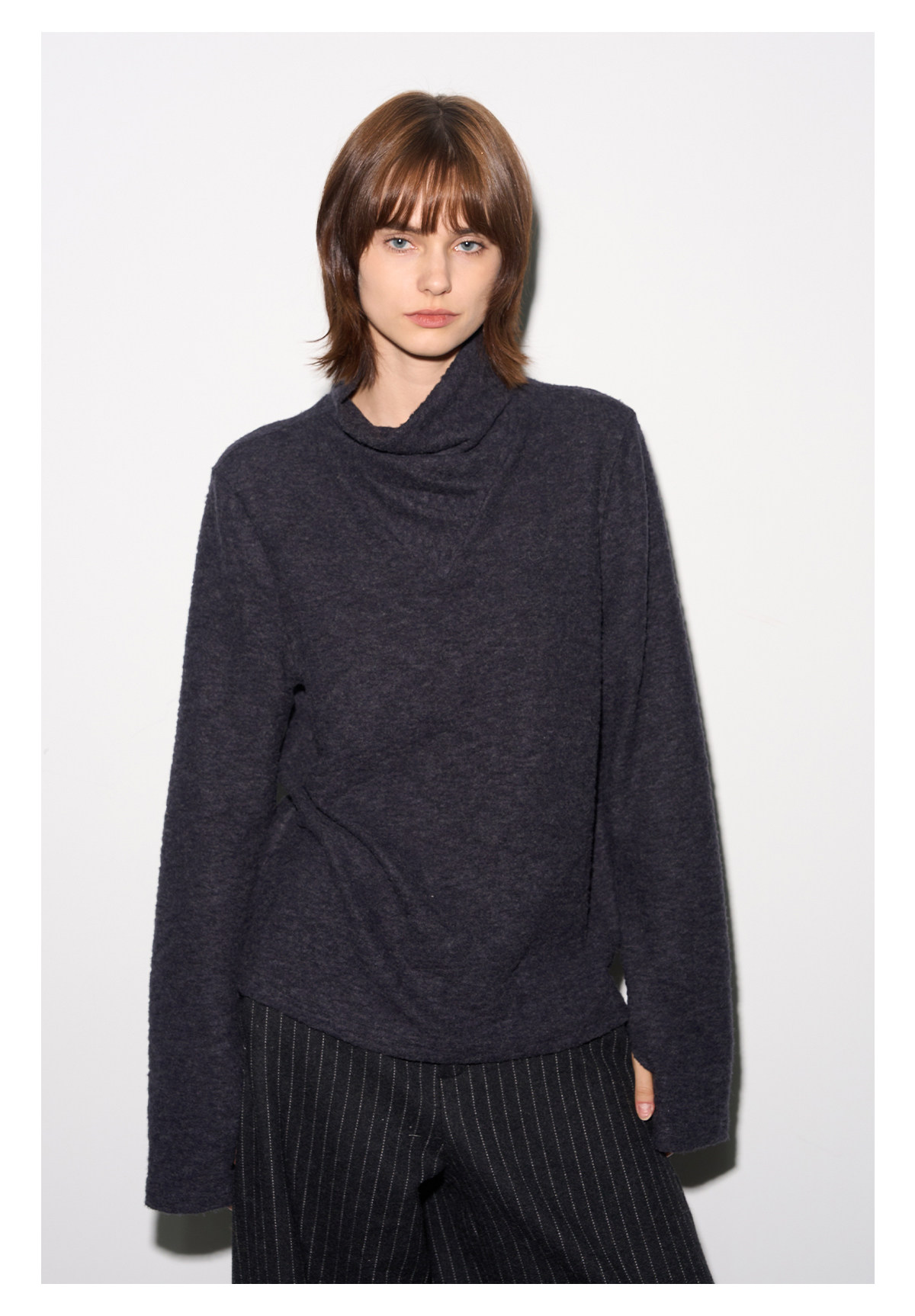This ultra-soft, form-fitting turtleneck top is your ultimate layering essential. Designed with a chic stacked neckline and a slim silhouette, it adds instant warmth and effortless style under blazers, dresses, or worn alone. Crafted for all-day comfort, it’s the perfect foundation for any elevated casual look.